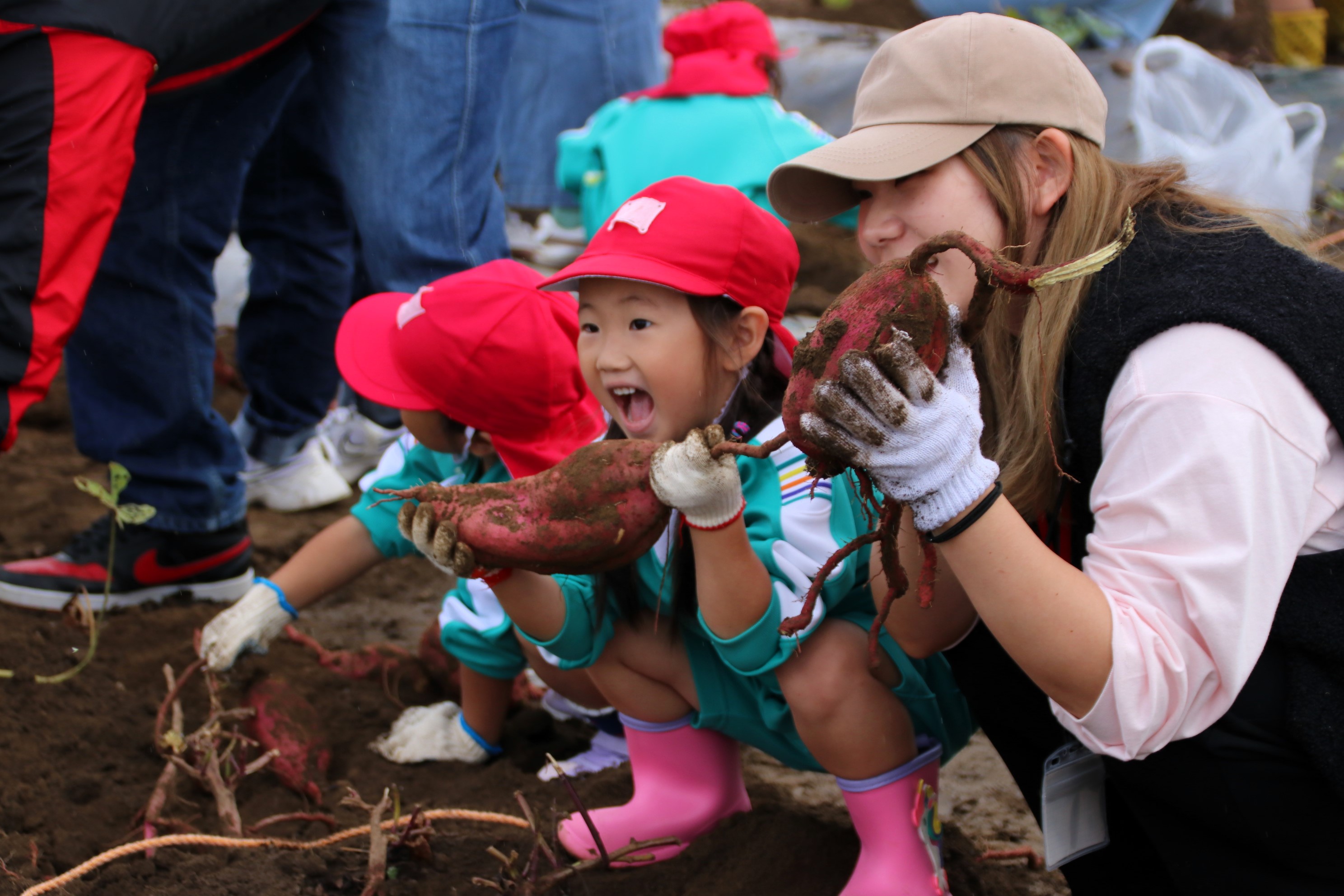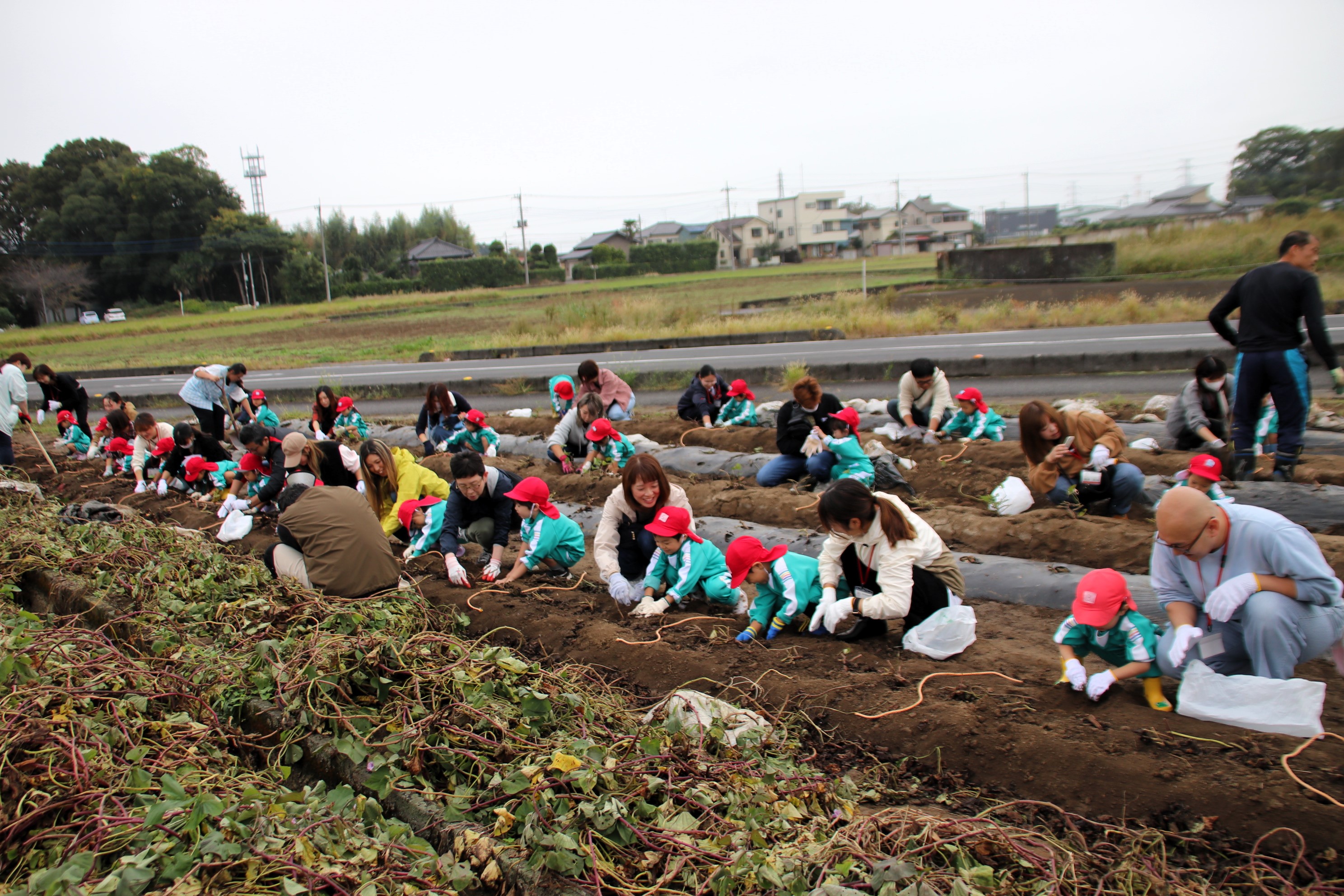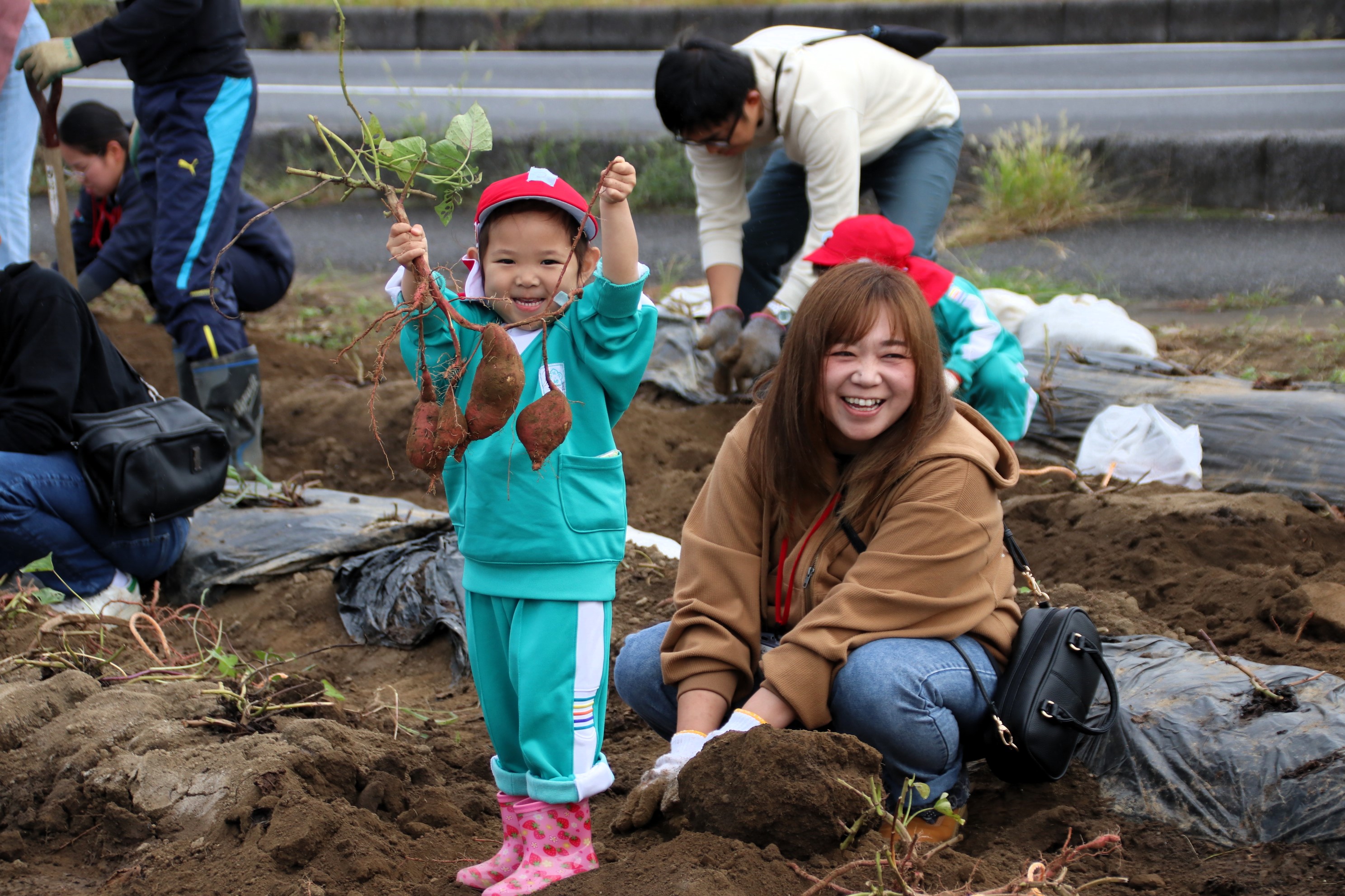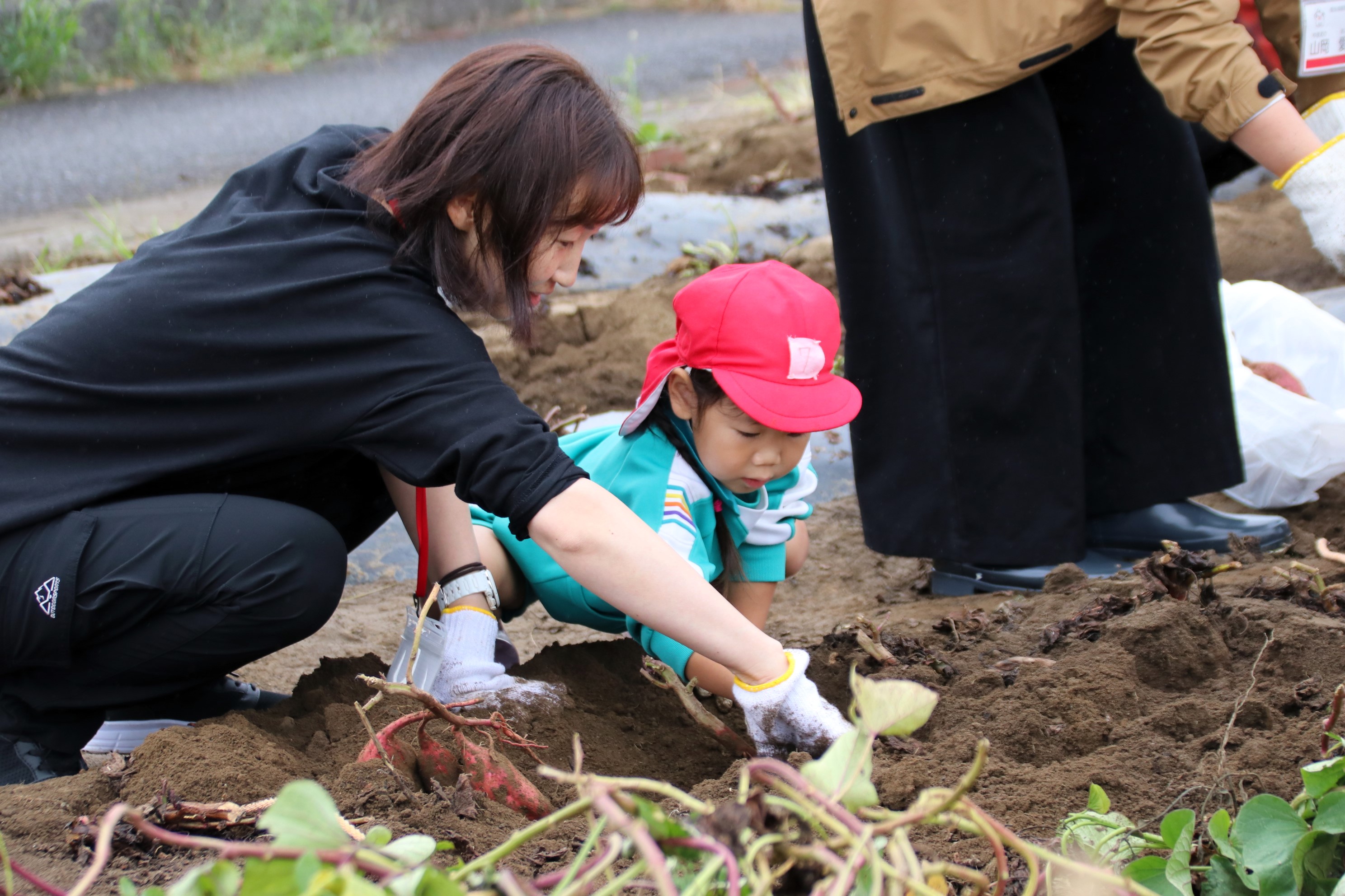 今日は年少さんが、親子でおいも掘りをしました。5月に親子で植えた苗は小さくて頼りない苗でしたが、日の光を浴び大地の養分を吸収して、大きくて立派なおいもに育ってくれました。思えば、ちゅうりっぷさんもこの半年でずいぶんと成長しましたね。笑顔いっぱいの楽しいおいも掘りになりました!