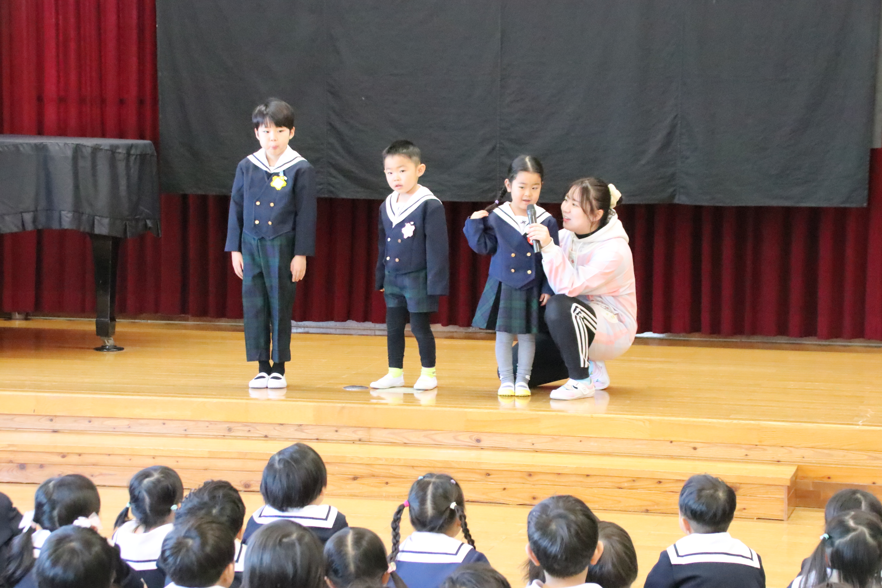 今日から3学期がスタートしました。始業式ではみんなで新年のあいさつをした後、理事長先生からお話がありました。また、各学年から一人ずつ、冬休みの出来事についてインタビューがあり、みんな楽しそうに聞いていました。短い3学期ですが、新年度に向けて楽しみながら一日一日を大切に締めくくりをしていきたいと思います。今学期もよろしくお願い致します。