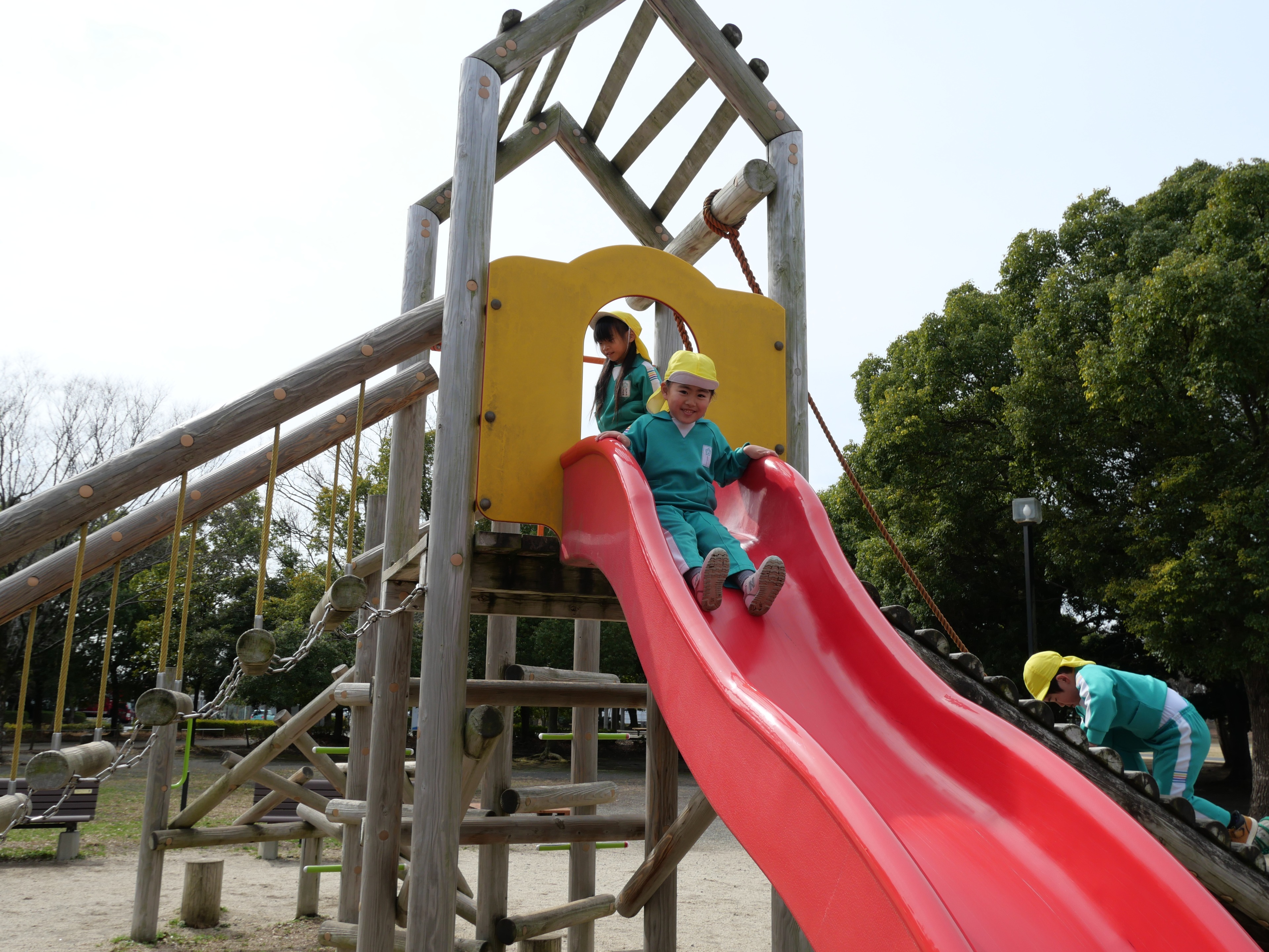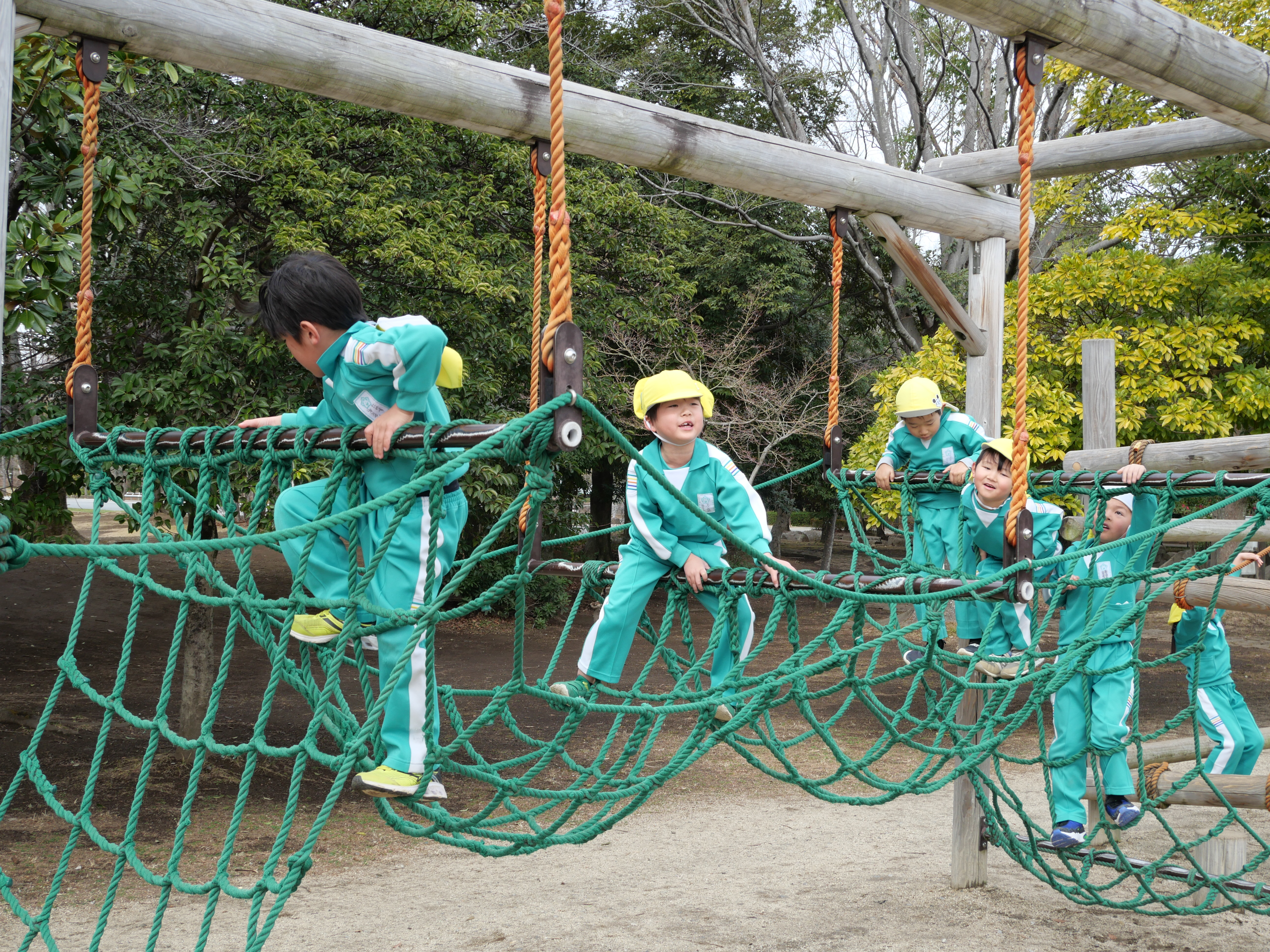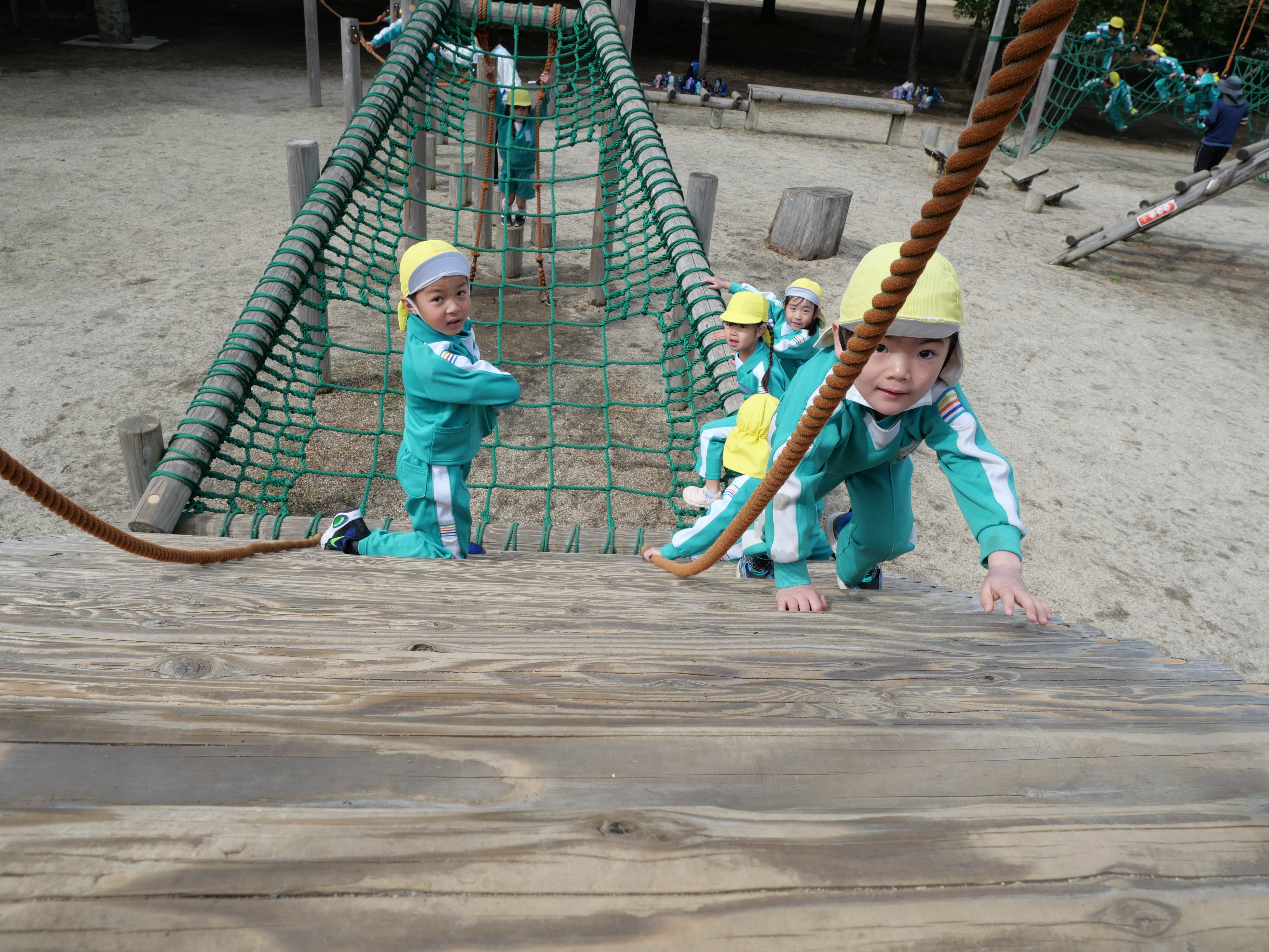 今日は年長さんが庄和総合公園に行き、アスレチックで遊んできました。幼稚園の遊具と比べて、スケールの大きな数々の遊具にみんな大喜び。ハラハラドキドキしながら楽しそうに遊んでいました。卒園を前にして、また一ついい思い出ができたようです。