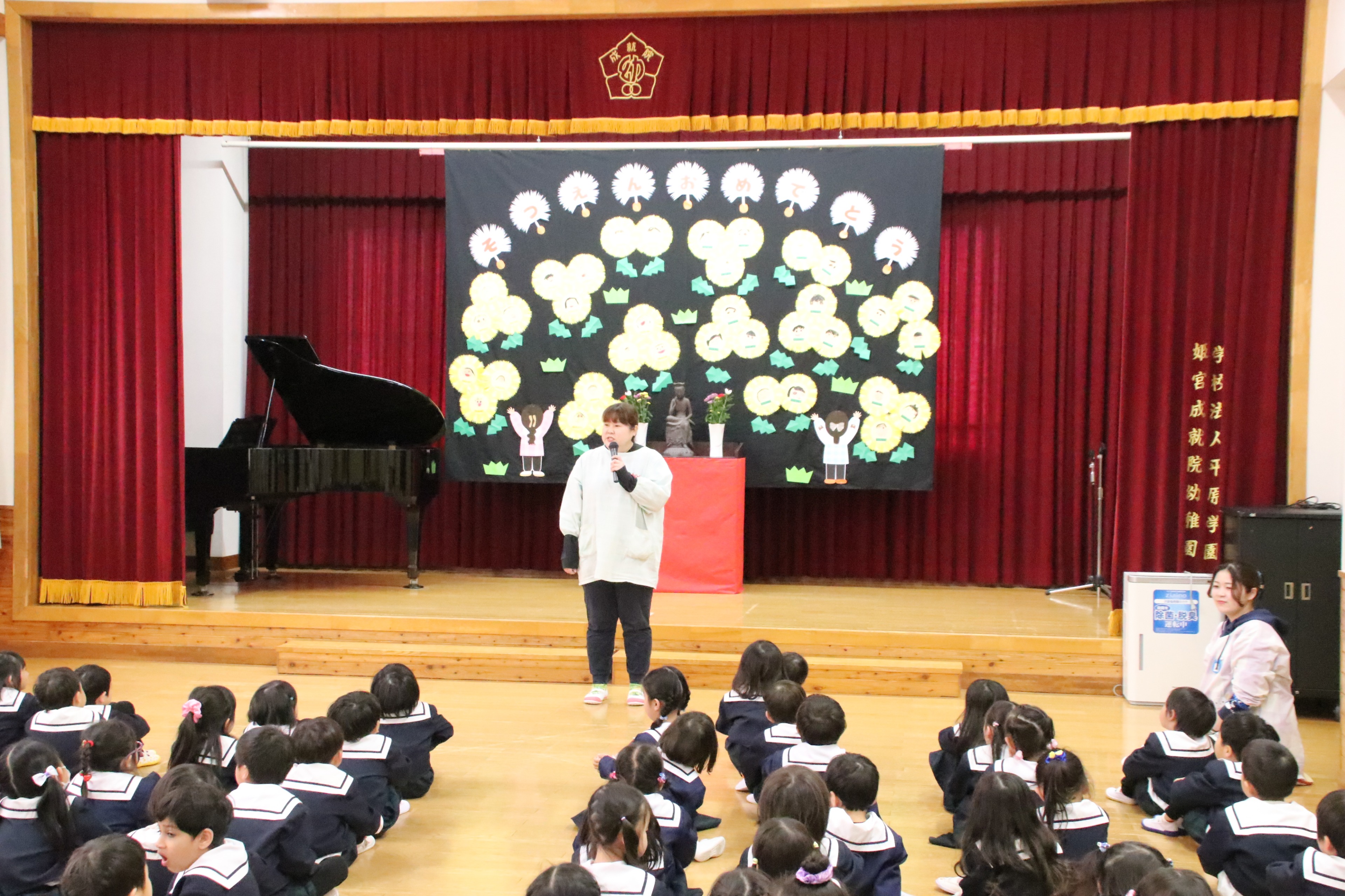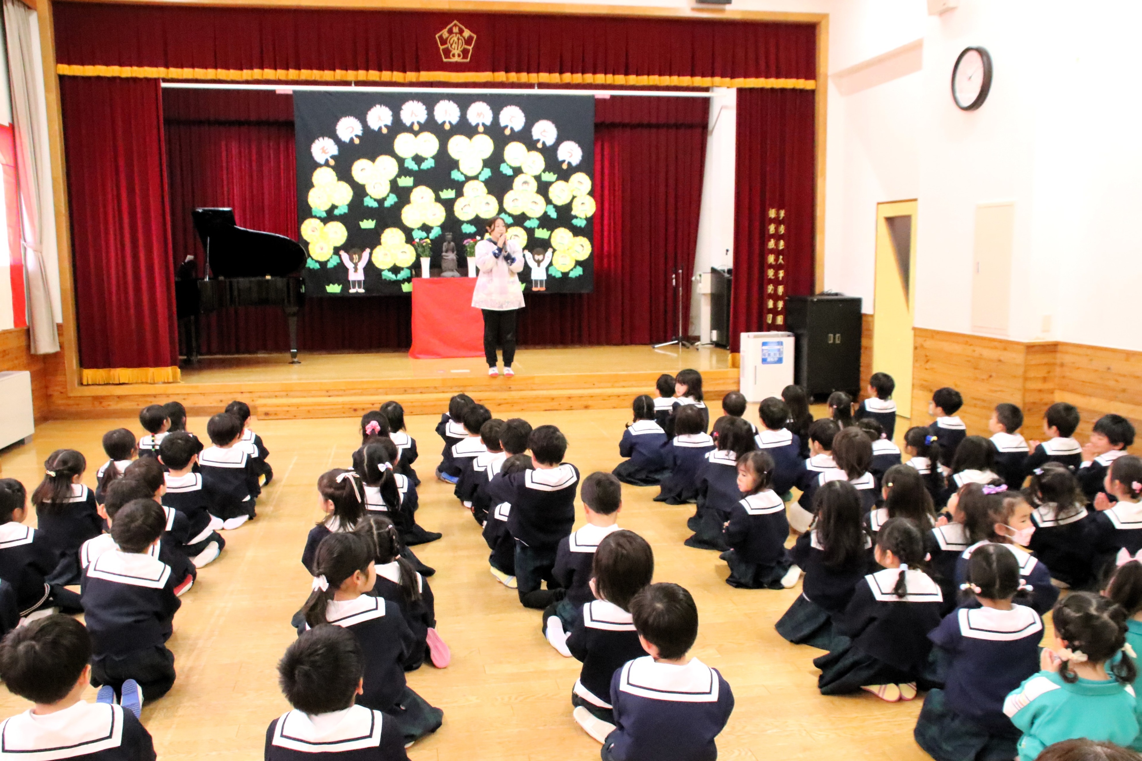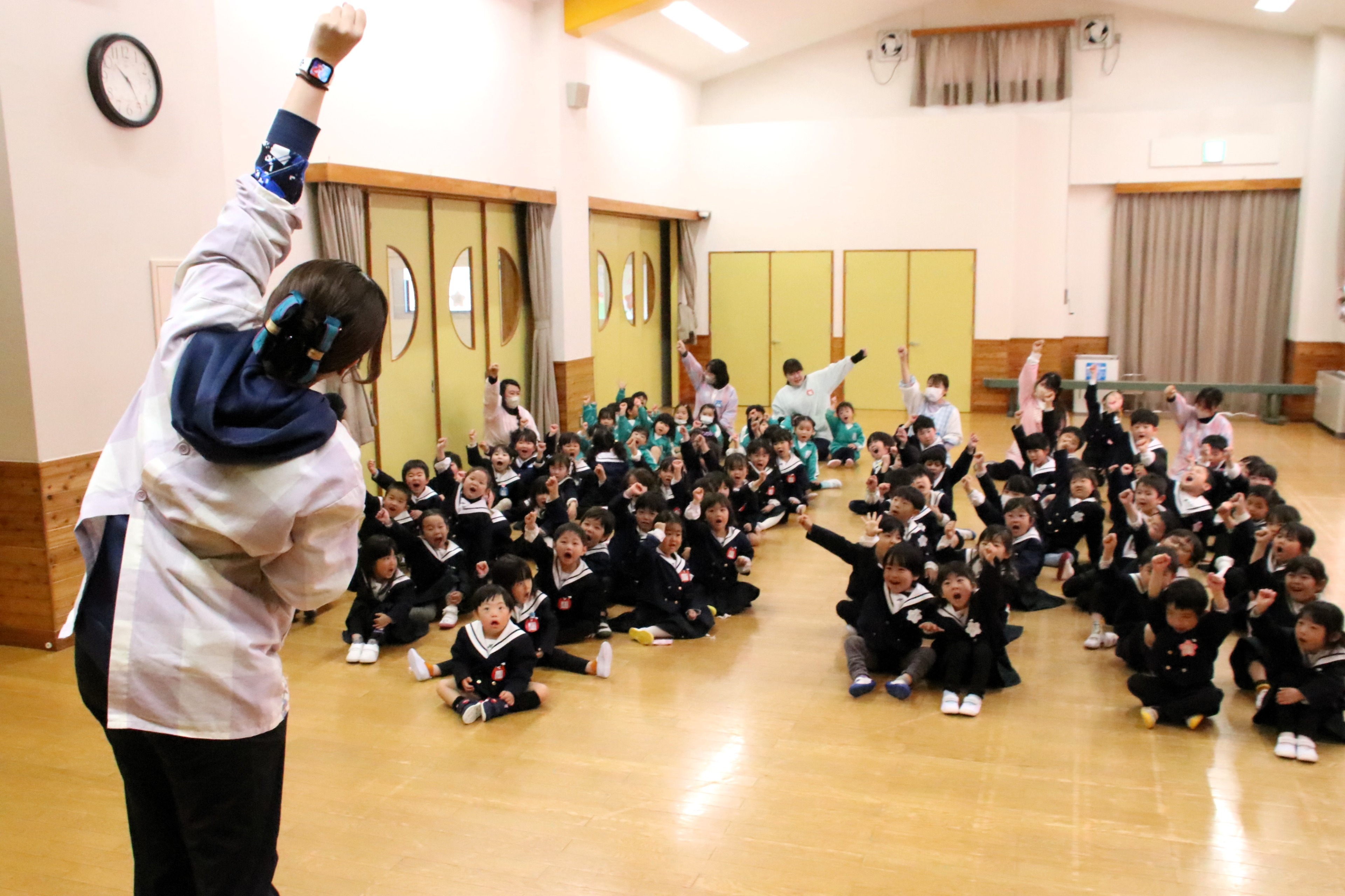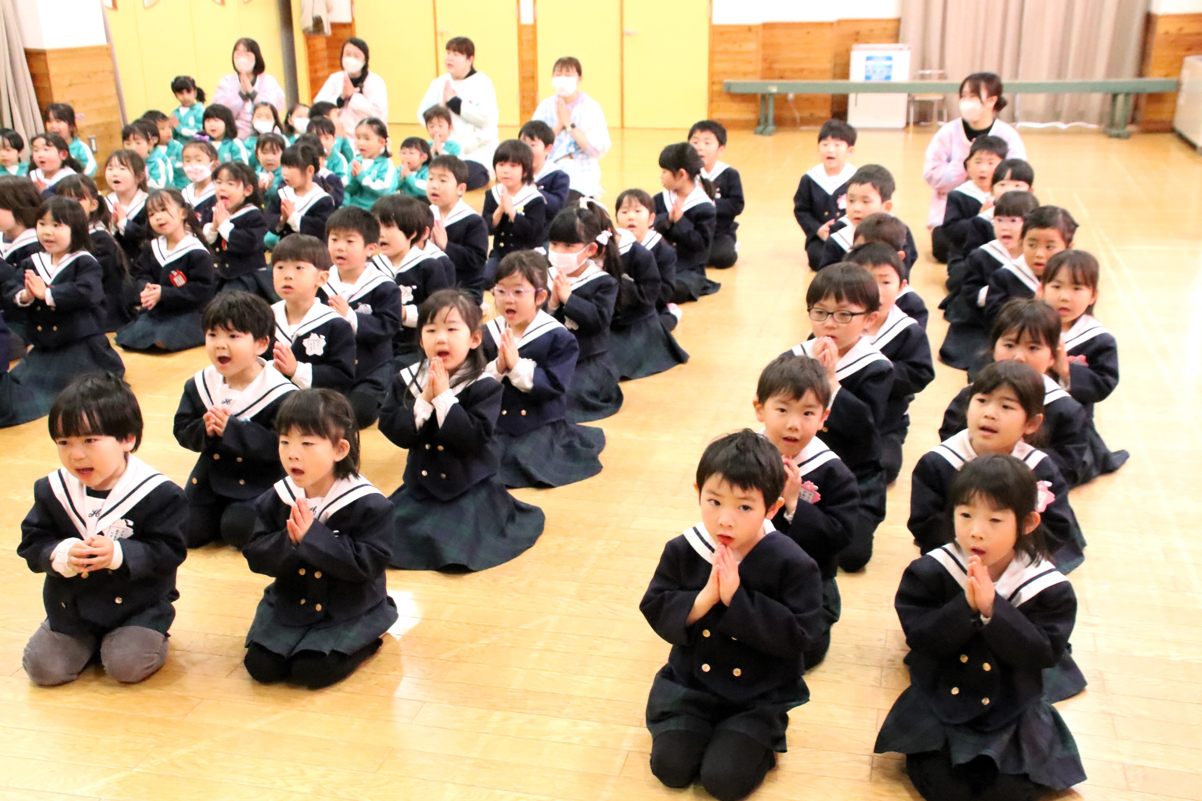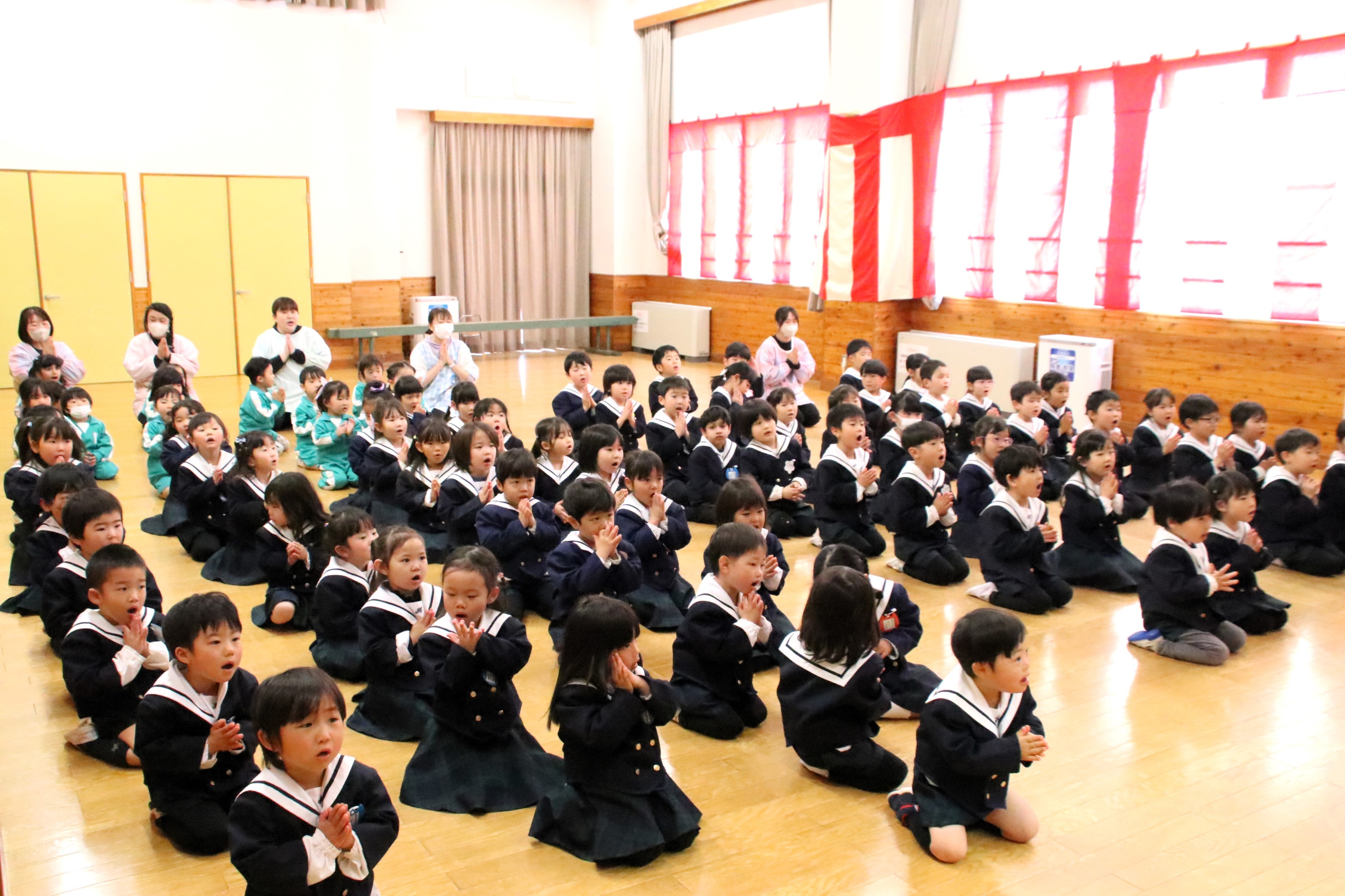 今日は1年間の締めくくり、修了式がありました。たんぽぽさんが卒園してしまい、少し寂しくなりましたが、4月から1つずつ進級することを聞くと、みんな嬉しそうに瞳をキラキラと輝かせていました。保護者、地域の皆様には今年度も1年間お世話になり、ありがとうございました。新年度もどうぞよろしくお願いいたします。