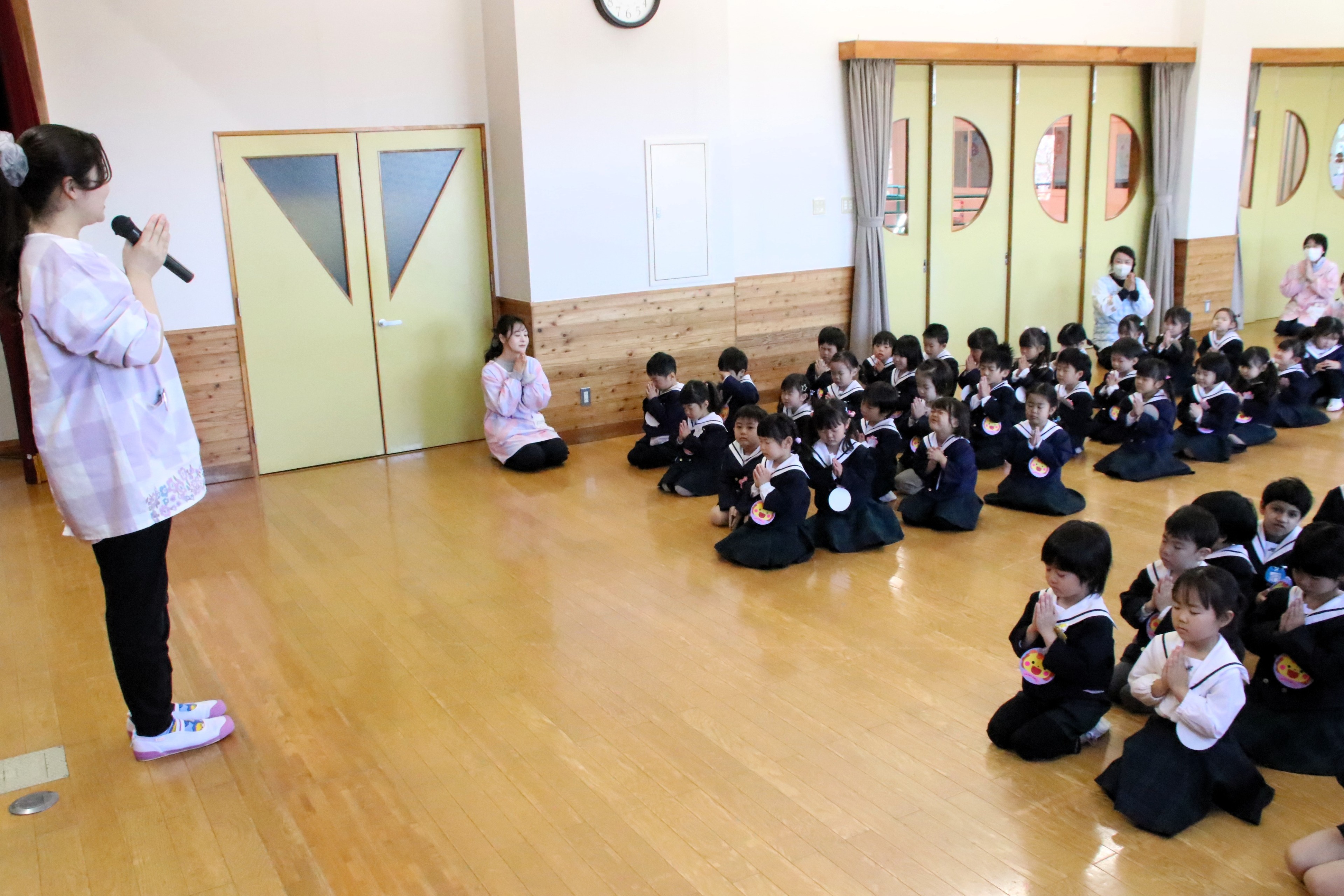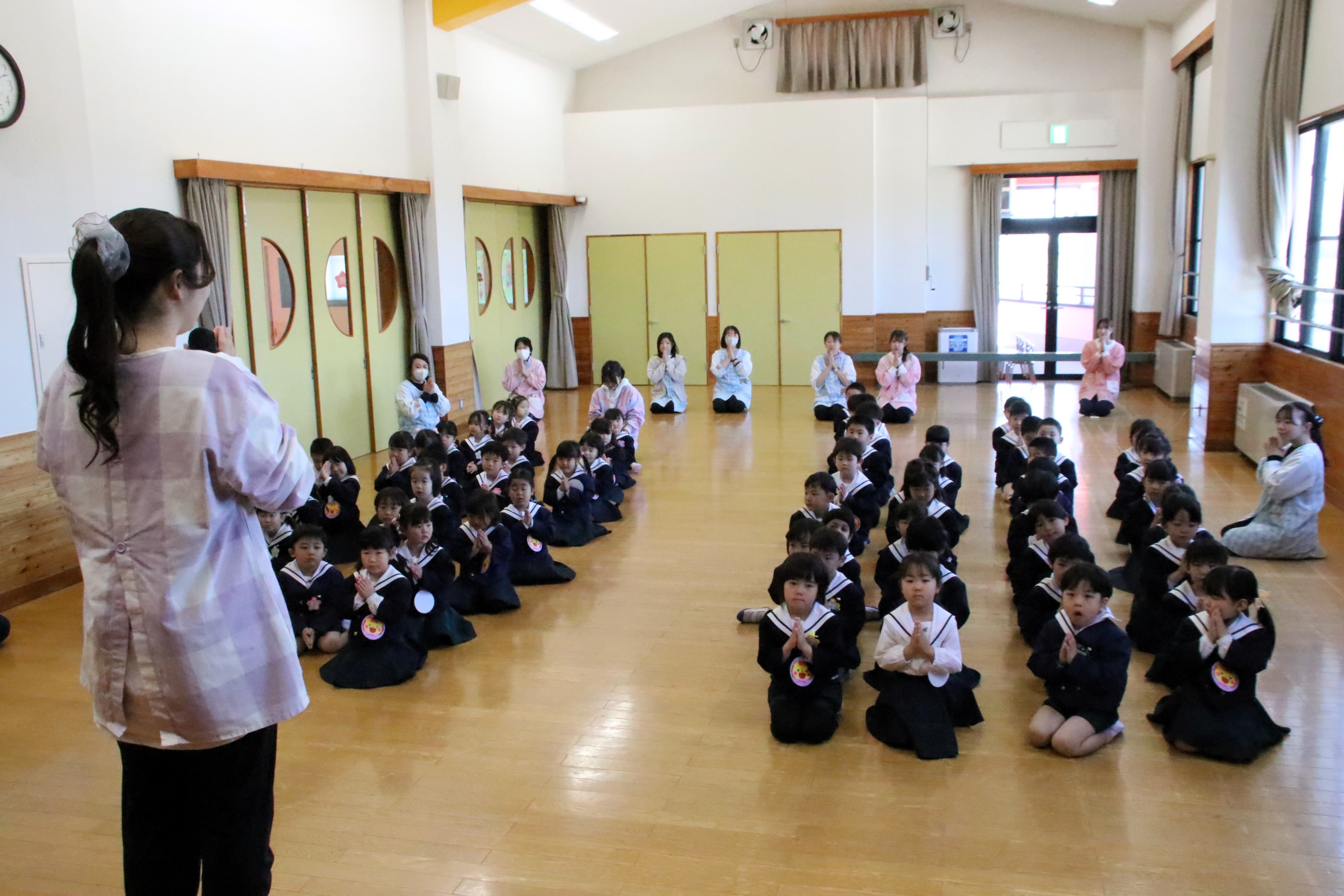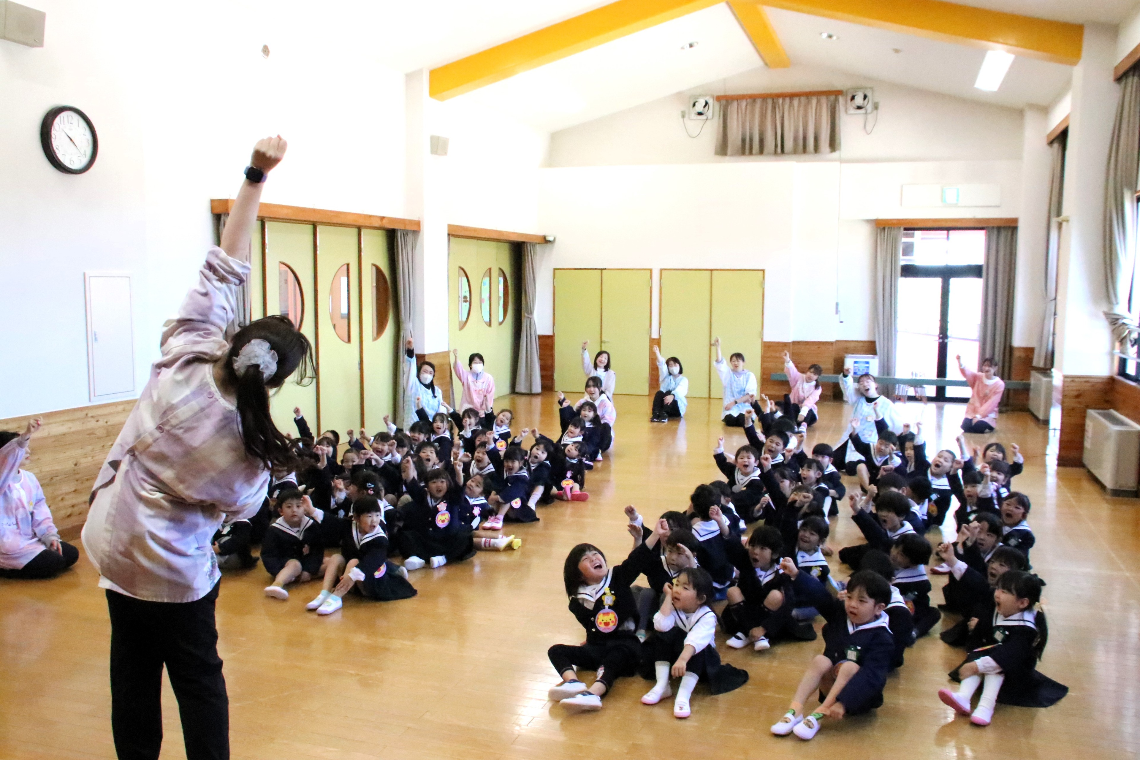 今日は昨年度から進級した園児と、新たに転入した園児で、令和8年度第1学期の始業式を行いました。担任発表ではみんなドキドキの表情でしたが、やさしそうな先生たちの笑顔を見て、嬉しそうにガッツポーズをしたり、先生に手を振ったりしていました。新しいお部屋、新しいお友達、新しい先生…。この1年間、様々な経験を重ねながら、どんな成長を見せてくれるのか、今から楽しみですね。保護者の皆様、今年度もどうぞよろしくお願いいたします!